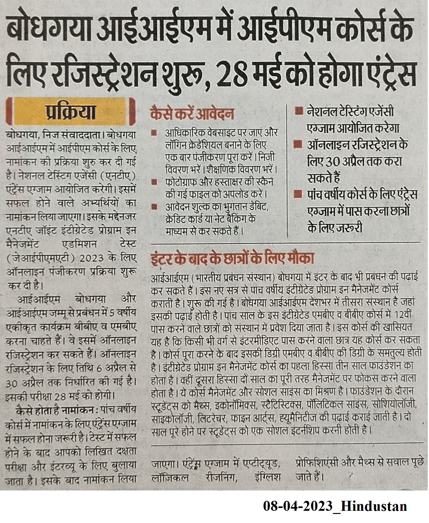बोधगया आईआईएम में आईपीएम कोर्स के लिए रजिस्ट्रेशन शुरु, 28 मई को होगा एंट्रेस