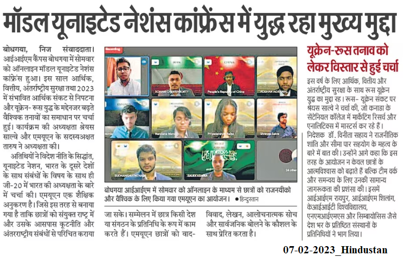 मॉडल यूनाइटेड नेशंस कांफ्रेंस में युद्ध रहा मुख्य मुद्दा