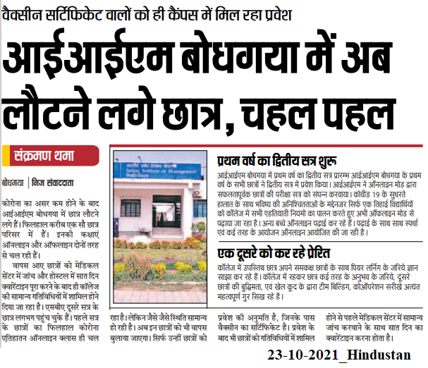 आईआईएम बोधगया में अब लौटने लगे छात्र, चहल पहल