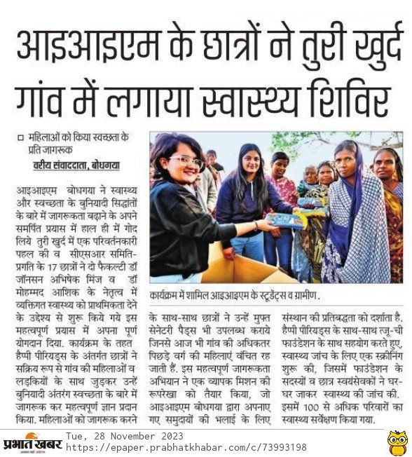 आइआइएम के छात्रों ने तुरी खुर्द गांव में लगाया स्वास्थ्य शिविर