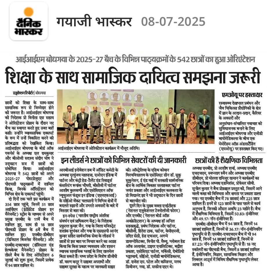 Indian Institute of Management Bodh Gaya, Dr. Vinita S. Sahay- Director of IIM Bodh Gaya, Management education—India, Orientation programme, Postgraduate students—Enrollment, Business schools—India, Academic year 2025–2027, Industry–academia collaboration, Government–academia collaboration, Professional education—India, Student induction programmes