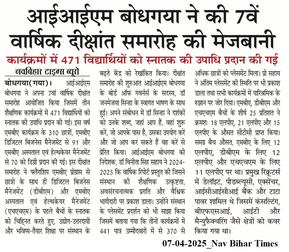 आईआईएम बोधगया ने की 7वें वार्षिक दीक्षांत समारोह की मेजबानी