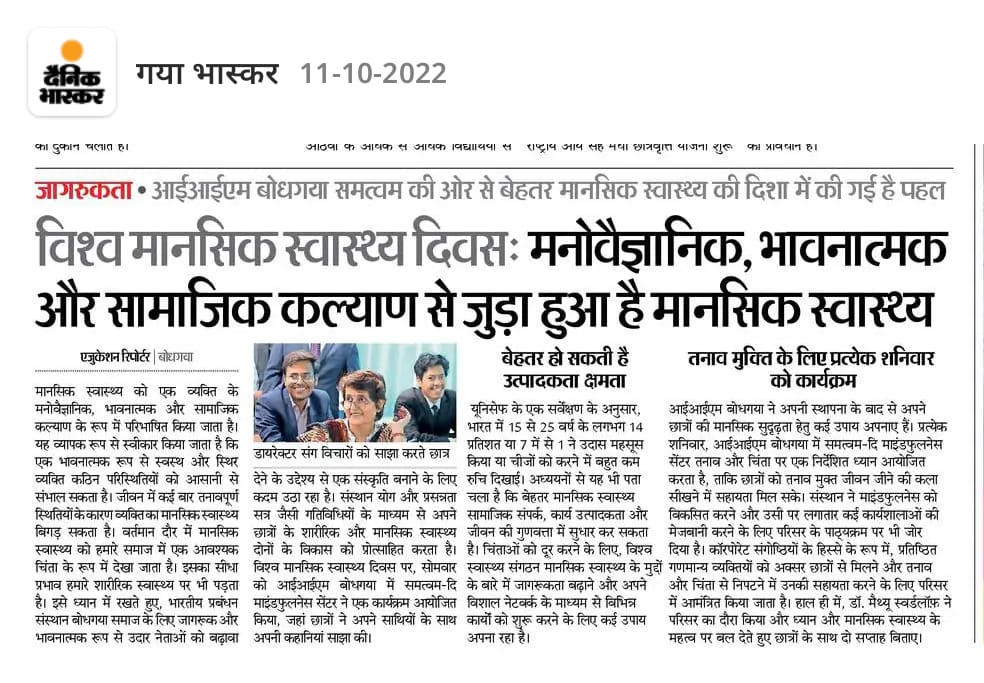 World Mental Health Day, Samatvam, Mindfulness
