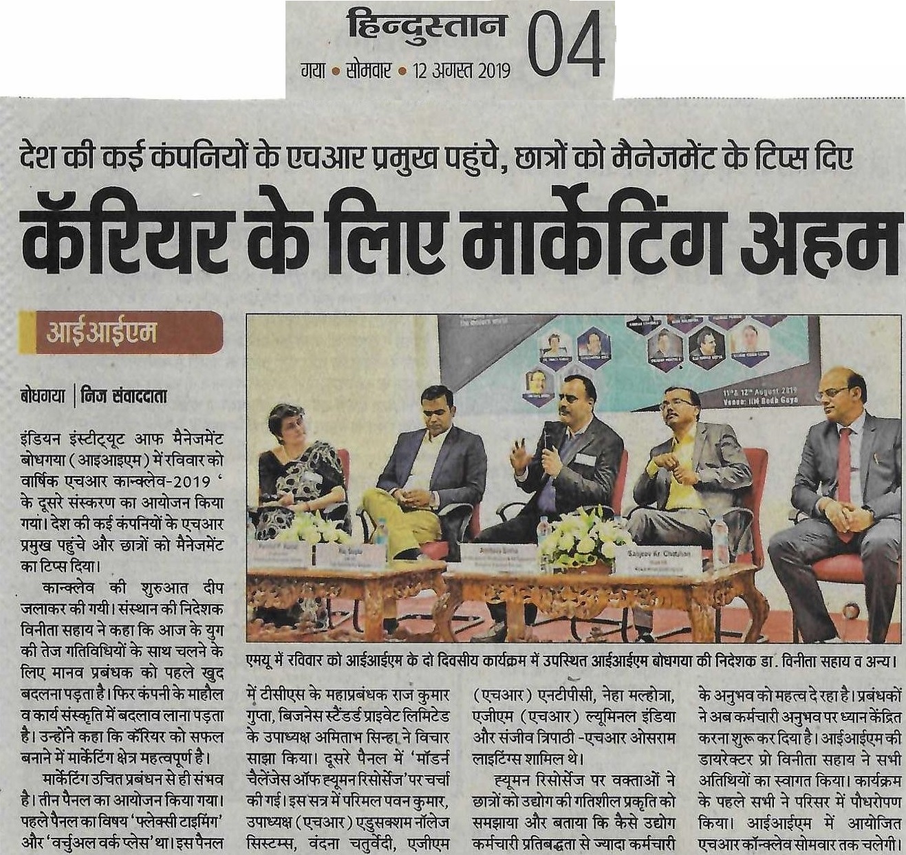 HR Conclave, Gyanodaya, Gyanodaya 2.0, Dr. Vinita S. Sahay- Director of IIM Bodh Gaya, Mr. Raj Kumar Gupta- GM-HR of TCS, Mr. Amitava Sinha- VP-HR of Business Standard Pvt. Ltd., Mr. Parimal P. Kumar- VP-HR and Operations of Edusuccess Knowledge Systems, Dr. Sanjeev Kr Chauhan- Head HR of Kewal Kiran Clothing Ltd., Ms. Vandana Chaturvedi- AGM HR of NTPC, Ms. Neha Malhotra- AGM HR of Luminous India, Mr. Sanjeev Tripathi- Head HR of Osram Lightings