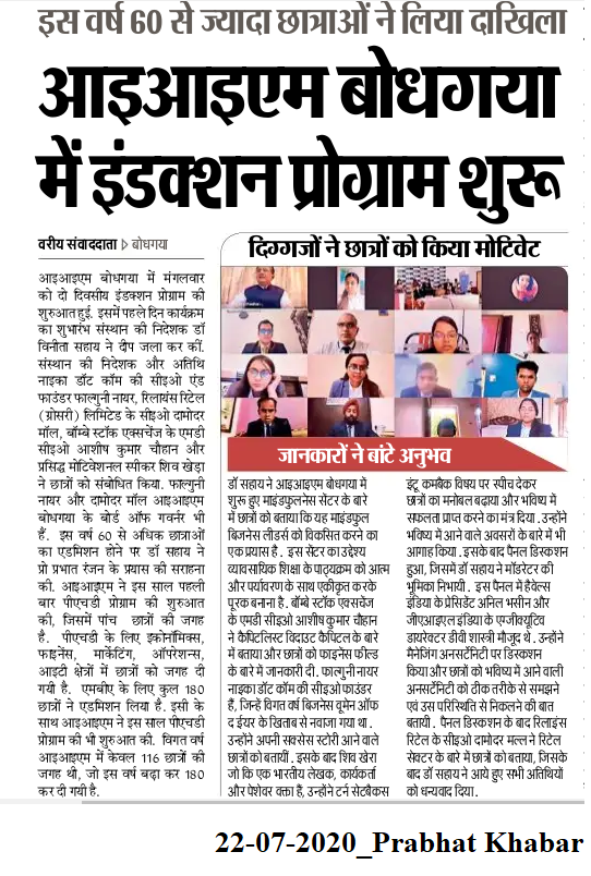 Orientation Programme, Orientation Programme-MBA, Induction Programme, Dr. Vinita S. Sahay- Director of IIM Bodh Gaya, Ms. Falguni Nayar, Shri Ashish Kumar Chauhan