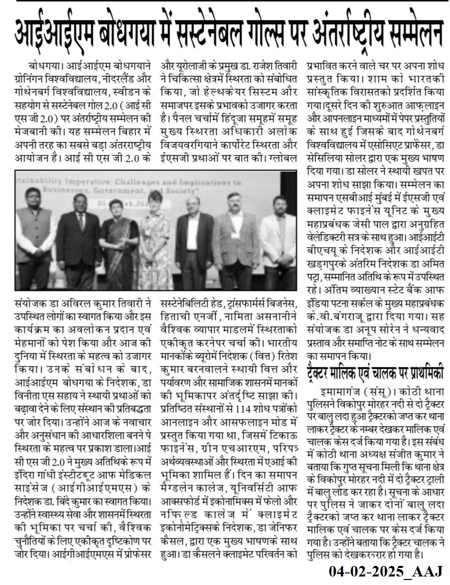 आईआईएम बोधगया में सस्टेनेबल गोल्स पर अंतर्राष्ट्रीय सम्मेलन