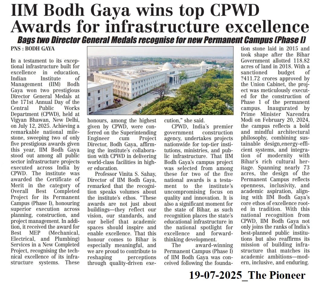 IIM Bodh Gaya Wins Top CPWD Awards for Infrastructure Excellence