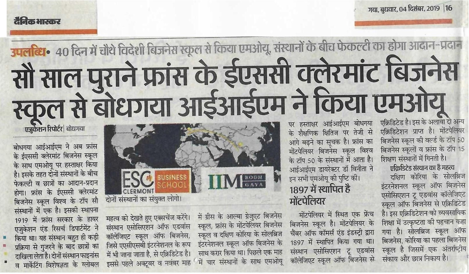 सौ साल पुराने फ्रांस के ईएससी क्लेरमांट बिजनेस स्कूल से बोधगया आईआईएम ने किया एमओयू
