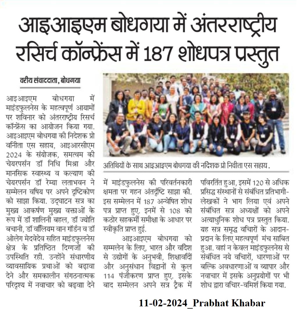 Conference, International Conference, International Research Conference on Mindfulness IRCM 2024, Dr. Vinita S. Sahay- Director of IIM Bodh Gaya, Dr. Nidhi Mishra- IIM Bodh Gaya, Dr. Remya Lathabhavan- IIM Bodh Gaya, Dr. Shalini Bahl, Dr. Jyoti Bachani, Dr. William Van Gordon, Dr. Oleg Medvedev Mindfulness