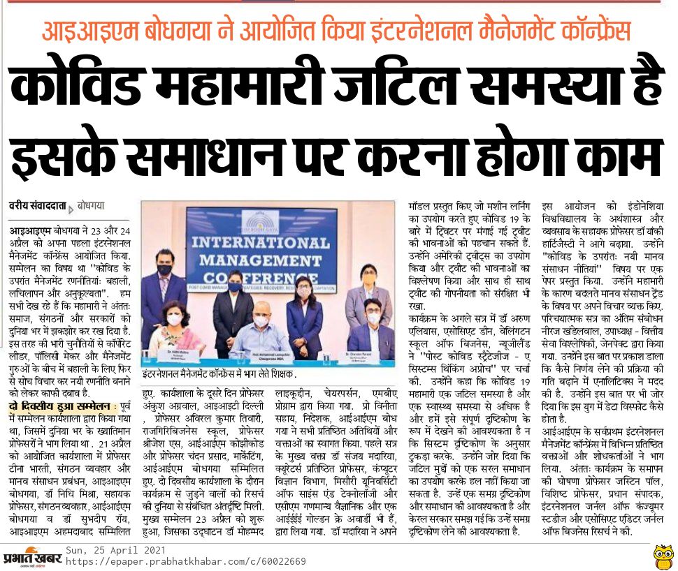 International Conference, International Management Conference (IMC), IMC 2021, Covid-19, Post Covid Tourism, Management Strategy, Online Shopping, Indian Economy, Dr. Vinita S. Sahay- Director of IIM Bodh Gaya, Dr. Nidhi Mishra- IIM Bodh Gaya, Dr. Subhadip Roy- IIM Ahmedabad, Prof. Ankush Agrawal- IIT Delhi, Prof. Sreejesh S- IIM Kozhikode, Dr. Chandan Prasad- IIM Bodh Gaya, Dr. Mohammed Laeequddin- IIM Bodh Gaya