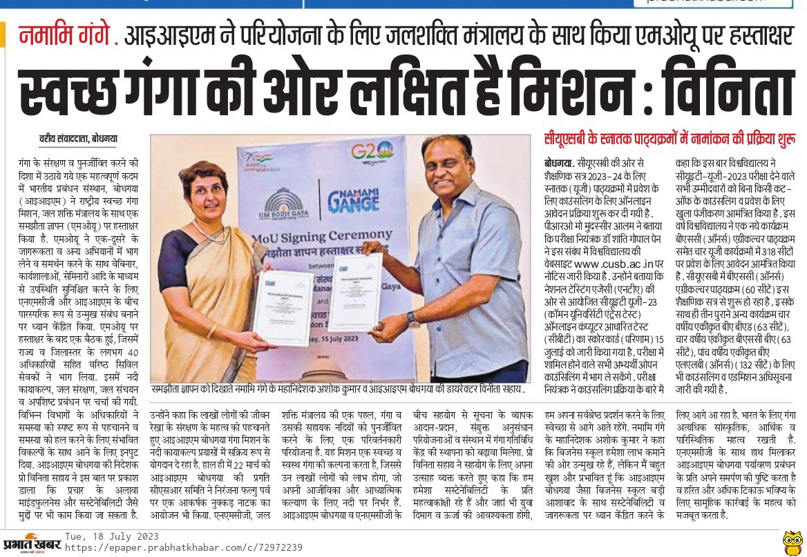 Memorandum of Understanding, MoU, Indian Institute of Management Bodh Gaya, Dr. Vinita S. Sahay- Director of IIM Bodh Gaya, Ministry of Jal Shakti- Govt. of India, Mr. G. Asok Kumar- Director General (NMCG), National Mission for Clean Ganga (NMCG), Namami Gange, IIM Bodh Gaya, IIMBG