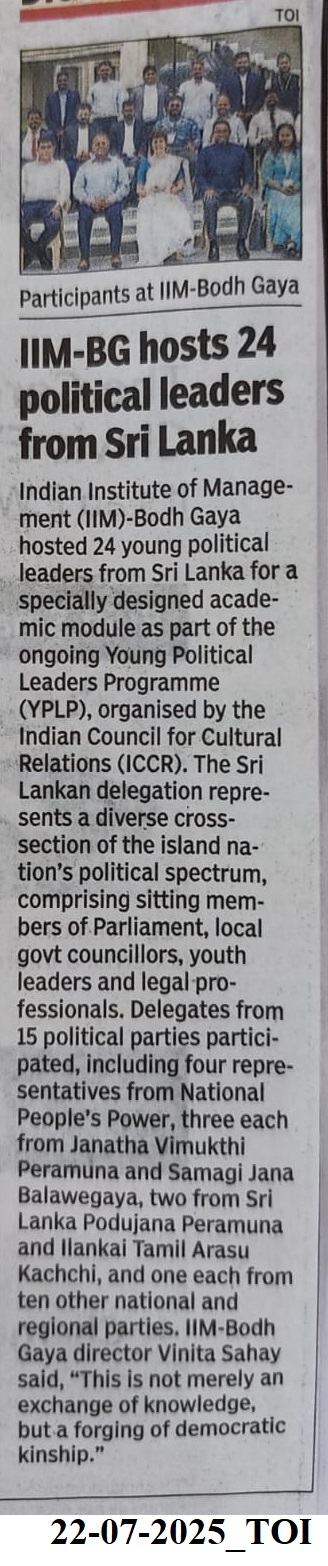 Young Political Leaders Programme (YPLP), Indian Council for Cultural Relations (ICCR), Political Spectrum, Political Leaders-Sri Lanka, Dr. Vinita S. Sahay- Director of IIM Bodh Gaya