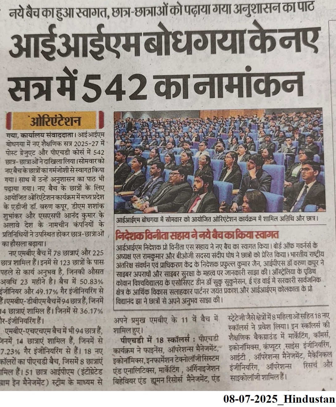 Indian Institute of Management Bodh Gaya, Dr. Vinita S. Sahay- Director of IIM Bodh Gaya, Management Education—India, Orientation Programme, Postgraduate Students—Enrollment, Business Schools—India, Academic Year 2025–2027, Industry–Academia Collaboration, Government–Academia Collaboration, Professional Education—India, Student Induction Programme