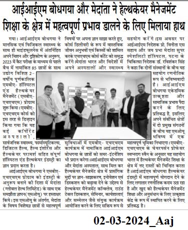 आईआईएम बोधगया और मेदांता ने हेल्थकेयर मैनेजमेंट शिक्षा के क्षेत्र में महत्वापूर्ण प्रभाव डालने के लिए मिलाया हाथ