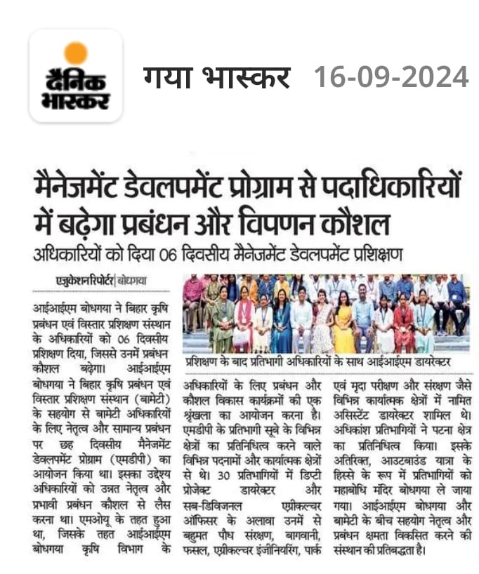 Management Development Program, MDP, MDP for Bihar Agriculture Management & Extension Training Institute (BAMETI) Officers, Bihar Agriculture Management and Extension Training Institute (BAMETI) Officers