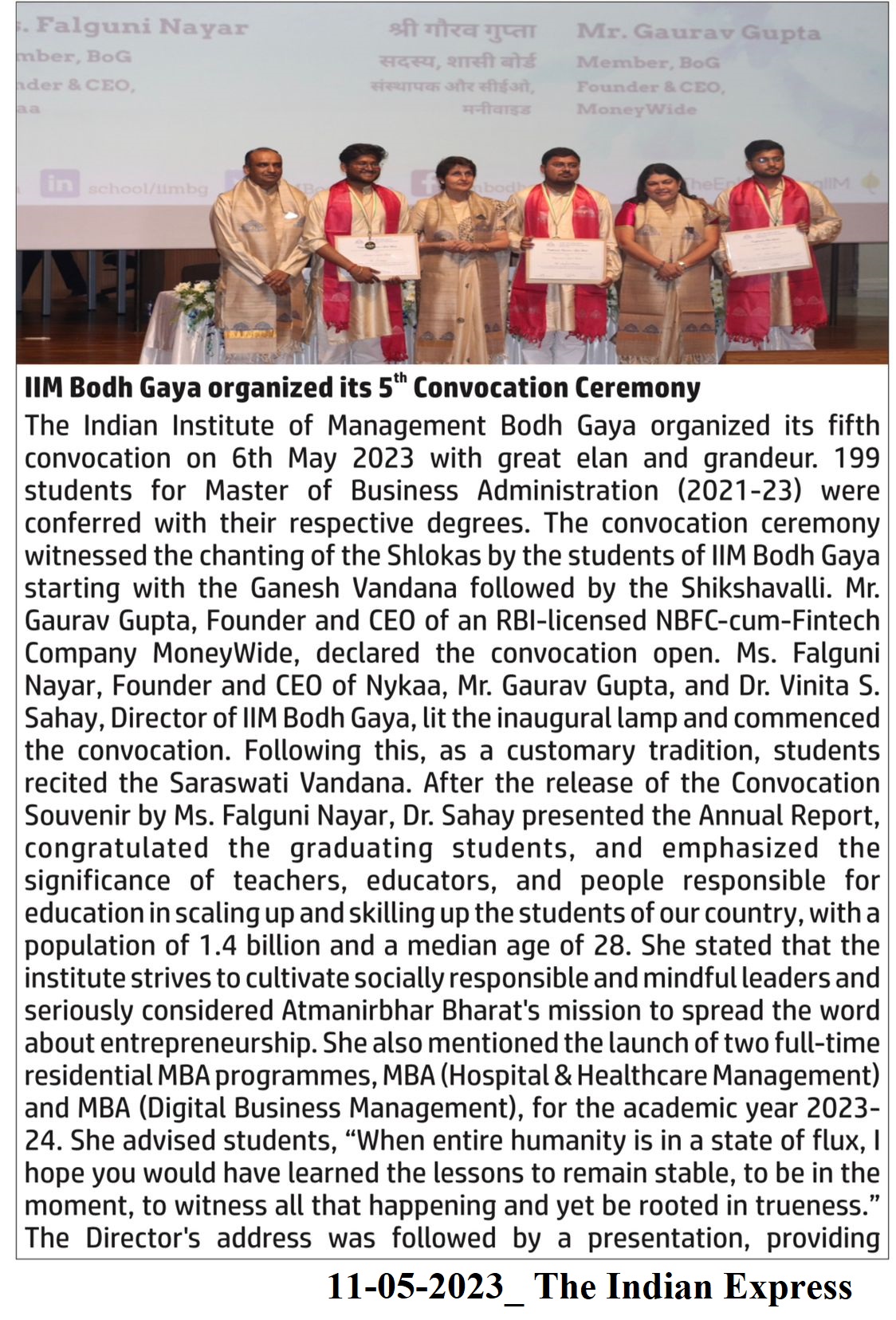 Convocation, 5th Annual Convocation, Convocation 2023, Mr. Gaurav Gupta, Ms. Falguni Nayar