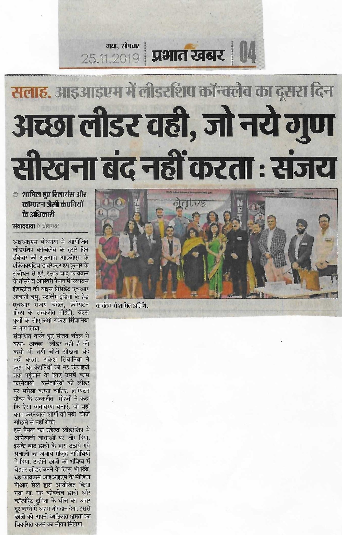 Annual Leadership Summit, Leadership Conclave, Netritva, Media and PR Cell, Shri Harsh Kumar- Executive Director of IBM, Srabani Basu- Vice-President of Reliance Industries Ltd., Shri Sanjay Chandel- Head HR of Styling India, Shri Satyajit Mohanty- CHRO and Vice President HR of Crompton Greaves, Shri Rakesh Singhania- CFO of Wells Fargo
