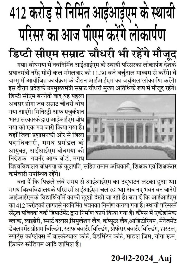 412 करोड़ से निर्मित आईआईएम के स्थायी परिसर का आज पीएम करेंगे लोकार्पण: डिप्टी सीएम सम्राट चौधरी भी रहेंगे मौजूद