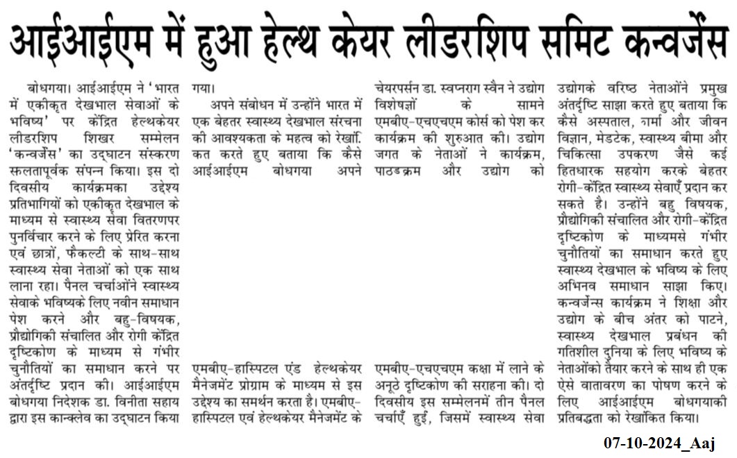 आईआईएम में हुआ हेल्थ केयर लीडरशिप समिट कन्वर्जेंस