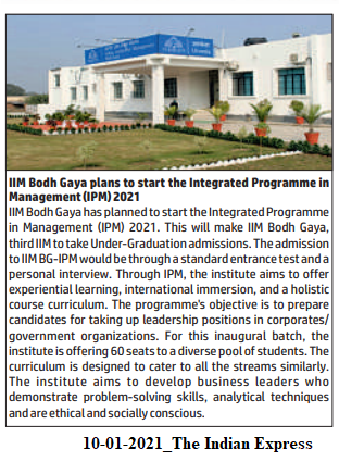 IIM Bodh Gaya plans to start the Integrated Programme in Management (IPM) 2021
