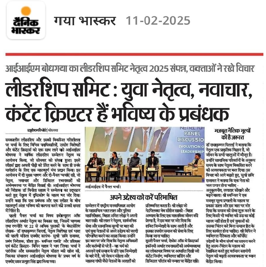 आईआईएम बोधगया का लादेशीप समिट नेतृत्व 2025 संपन्न, वक्ताओं ने रखे विचार