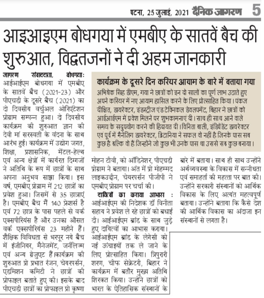 आइआइएम बोधगया में एमबीए के सातवें बैच की शुरुआत, विद्वतजनों ने दी अहम जानकारी