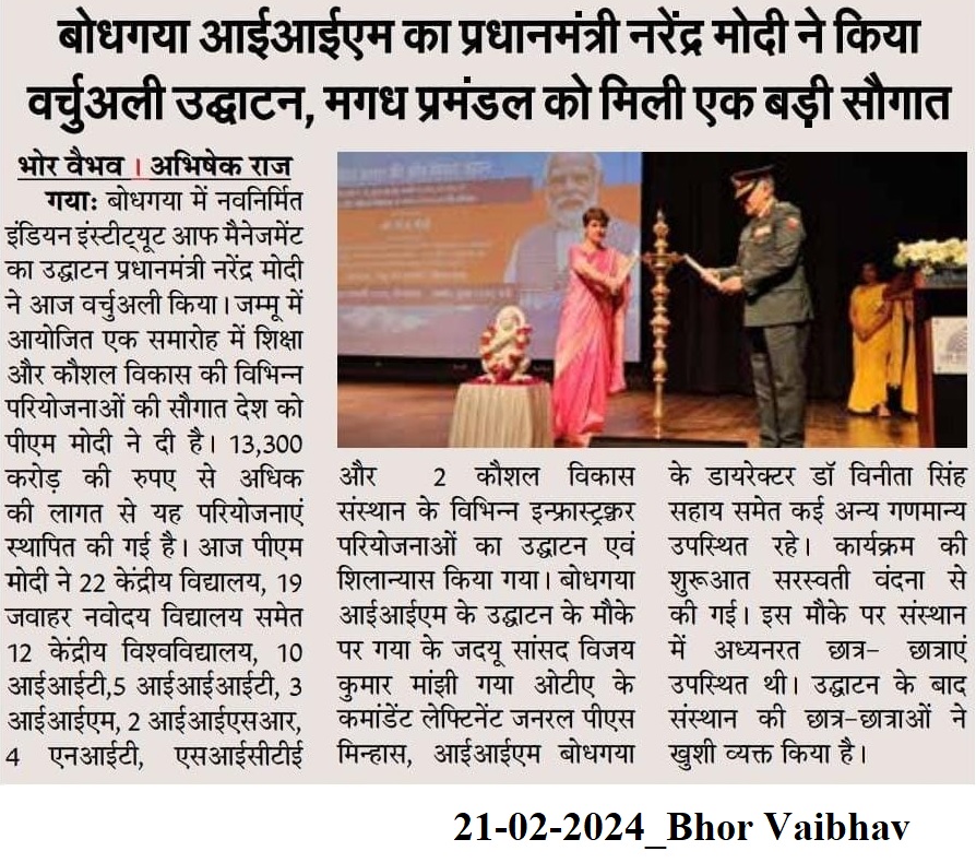 Permanent Campus, Inauguration, Inauguration of Permanent Campus, Shri Narendra Modi, Prime Minister of India, Shri Samrat Choudhary, Deputy Chief Minister of Bihar, Dr. Vinita S. Sahay- Director of IIM Bodh Gaya, Lt. General P. S. Minhas AVSM- Commandant- OTA Gaya, Shri Vijay Kumar- Member of Parliament Gaya