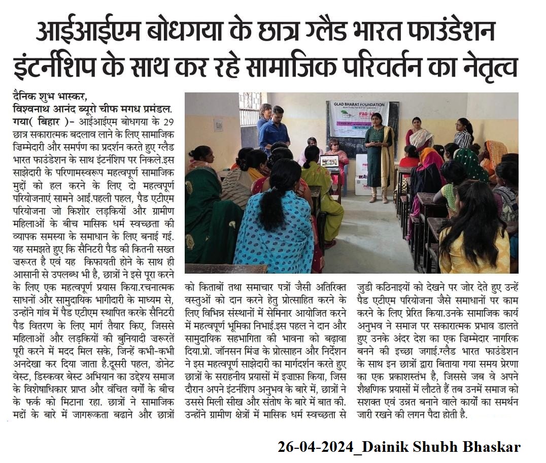 आईआईएम बोधगया के छात्र ग्लैड भारत फाउंडेशन इंटर्नशिप के साथ कर रहे सामाजिक परिवर्तन का नेतृत्व