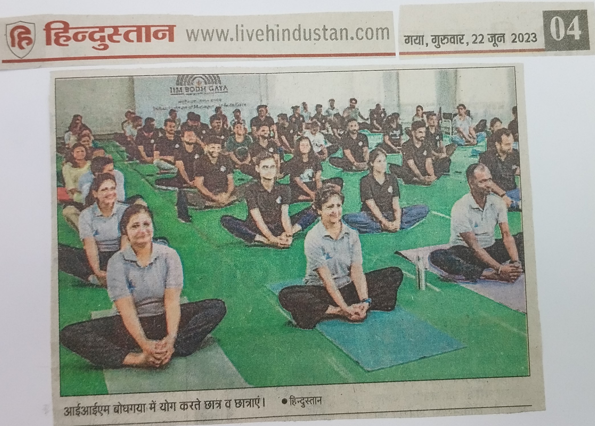 आईआईएम बोधगया में योग करते छात्र व छात्राएं