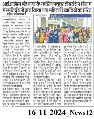 आईआईएम बोधगया के नर्चरिंग फ्यूचर लीडरशिप प्रोग्राम में स्मृति ईरानी द्वारा किया गया महिला शिक्षाविदों को प्रेरित