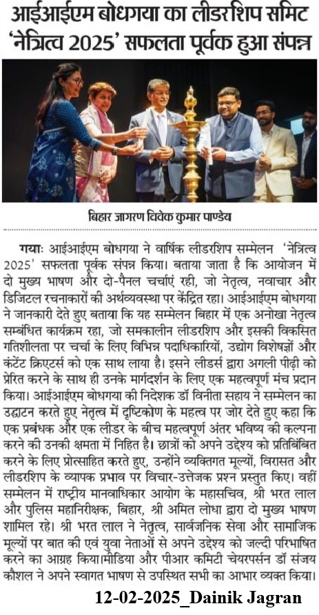 आईआईएम बोधगया का लादेशीप समिट 'नेतृत्व 2025' सफलता पूर्वक हुआ संपन्न
