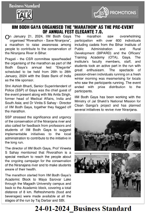 Marathon Race, Riverathon-Save Niranjana, Annual Fest, Elegante, Elegante 7.0, Shri Ashish Bharti- Senior Superintendent of Police (SSP) Gaya, Dr. Vinita S. Sahay- Director of IIM Bodh Gaya