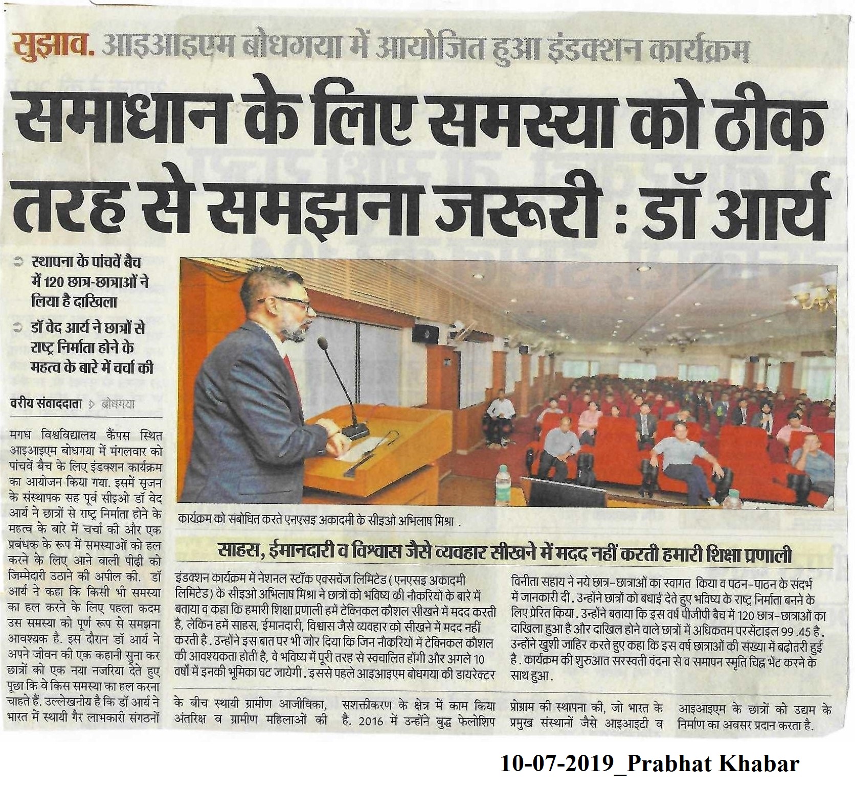 Orientation Programme, Orientation Programme-MBA, Induction Programme, Dr. Ved Arya-Founder and Former CEO of SRIJAN (Self-Reliant Initiatives through Joint Action), Shri Abhilash Misra- CEO of National Stock Exchange (NSE) Academy, Dr. Vinita S. Sahay- Director of IIM Bodh Gaya