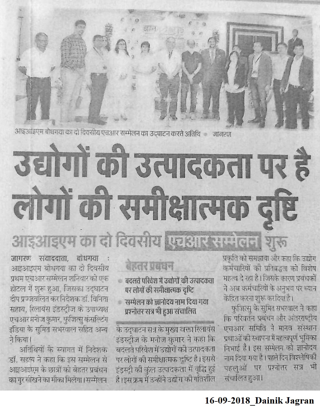उद्योगों की उत्पादकता पर है लोगों की समीक्षात्मक दृष्टि : आइआइएम का दो दिवसीय एचआर सम्मेलन शुरु