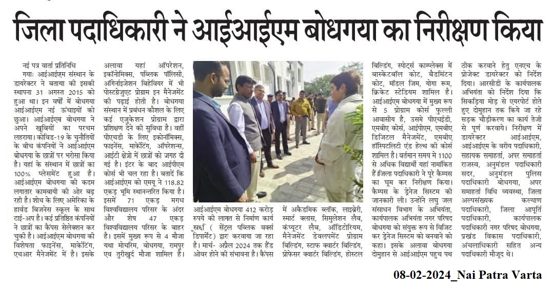 जिला पदाधिकारी ने आईआईएम बोधगया का निरीक्षण किया