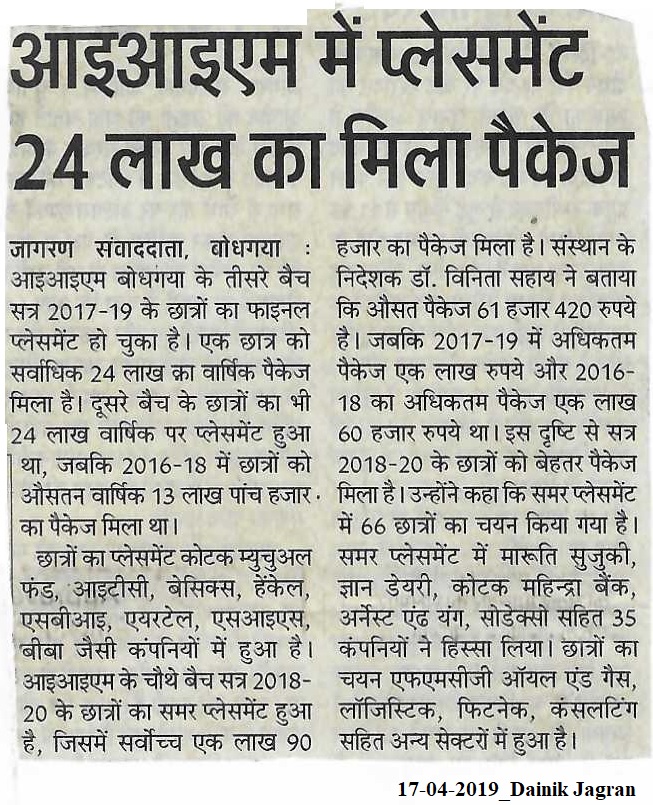 आइआइएम में प्लेसमेंट 24 लाख का मिला पैकेज