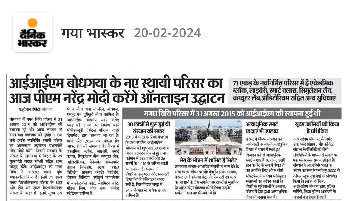 आईआईएम बोधगया के नए स्थायी परिसर का आज पीएम नरेंद्र मोदी करेंगे ऑनलाइन उद्धाटन