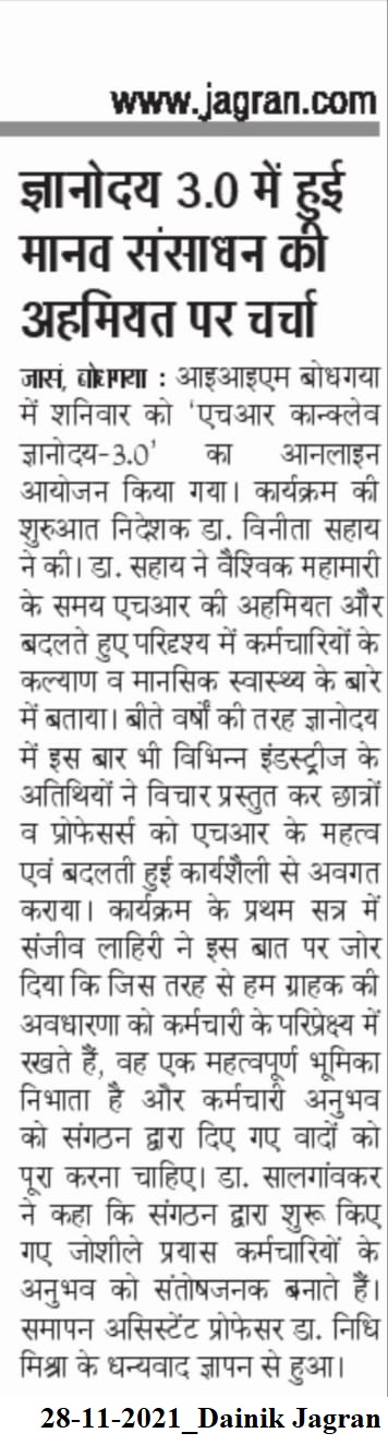 HR Conclave, Gyanodaya, Gyanodaya 3.0, Dr. Vinita S. Sahay- Director of IIM Bodh Gaya, Dr. Nidhi Mishra- IIM Bodh Gaya, Indrani Ghosh- Country Head-Global Growth IOC, Shri Sanjeeb Lahiri- Chief HR Officer-GRP Ltd., Dr. Prashant P Salgaonkar- CHRO-Shapoorji Pallonji Engineering and Construction