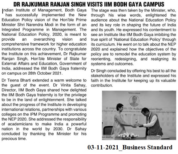 Dr. Vinita S. Sahay- Director of IIM Bodh Gaya, Dr. Rajkumar Ranjan Singh- Minister of State for External Affairs, NEP 2020