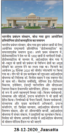 भारतीय प्रबंधन संस्थान, बोधगया द्वारा आयोजित प्रतियोगिता प्रोटोथलाइटिस का समापन