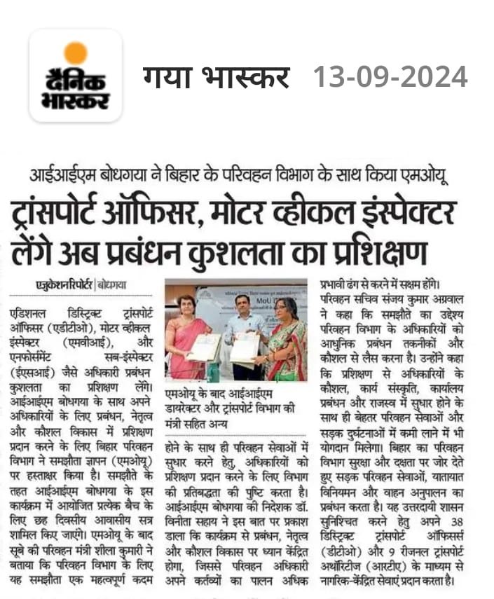 आईआईएम बोधगया ने बिहार के परिवहन विभाग के साथ किया एमओयू