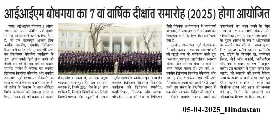 आईआईएम बोधगया का 7 वां वार्षिक दीक्षांत समारोह (2025) होगा आयोजित
