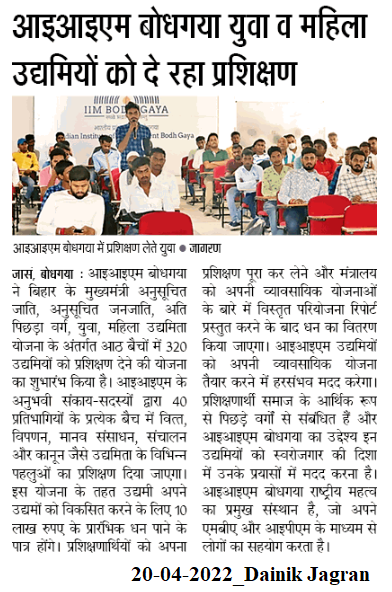 आइआइएम बोधगया युवा व महिला उद्यमियों को दे रहा प्रशिक्षण
