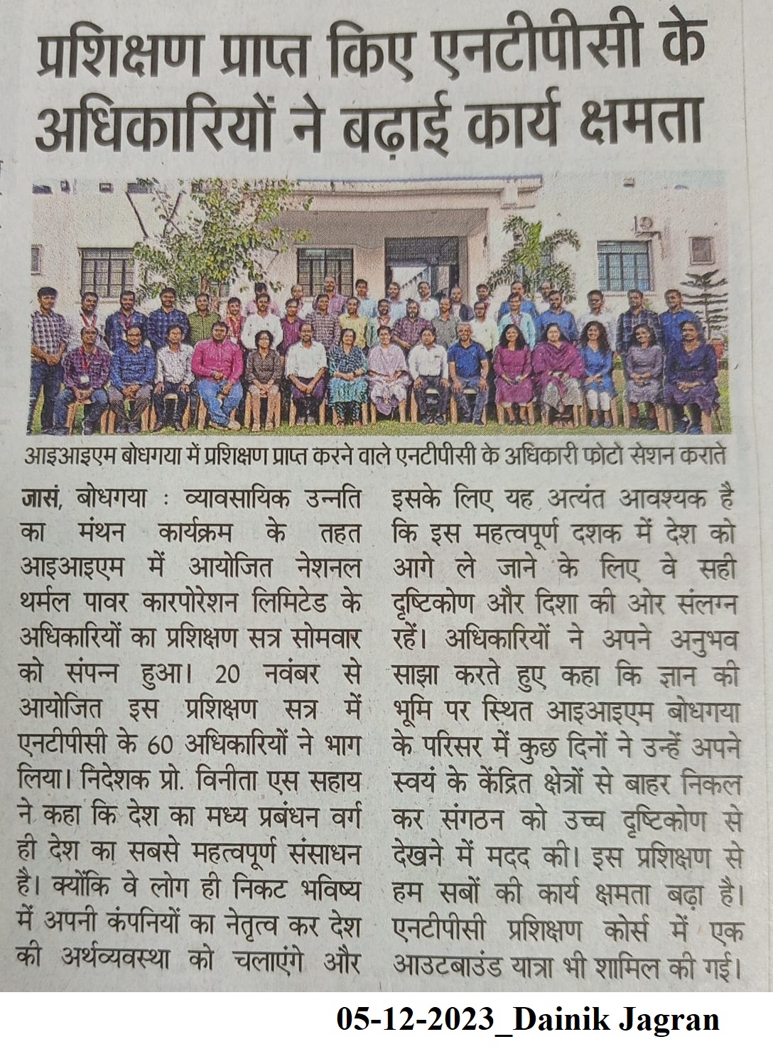 Management Development Program, MDP, NTPC Limited, Dr. Vinita S. Sahay- Director of IIM Bodh Gaya