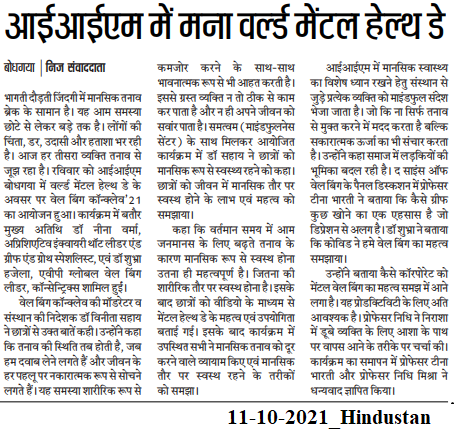 World Mental Health Day, Well-being Conclave 21, Well-being, Mindfulness, Dr. Vinita S. Sahay- Director of IIM Bodh Gaya, Dr. Nidhi Mishra- IIM Bodh Gaya, Dr. Teena Bharti- IIM Bodh Gaya