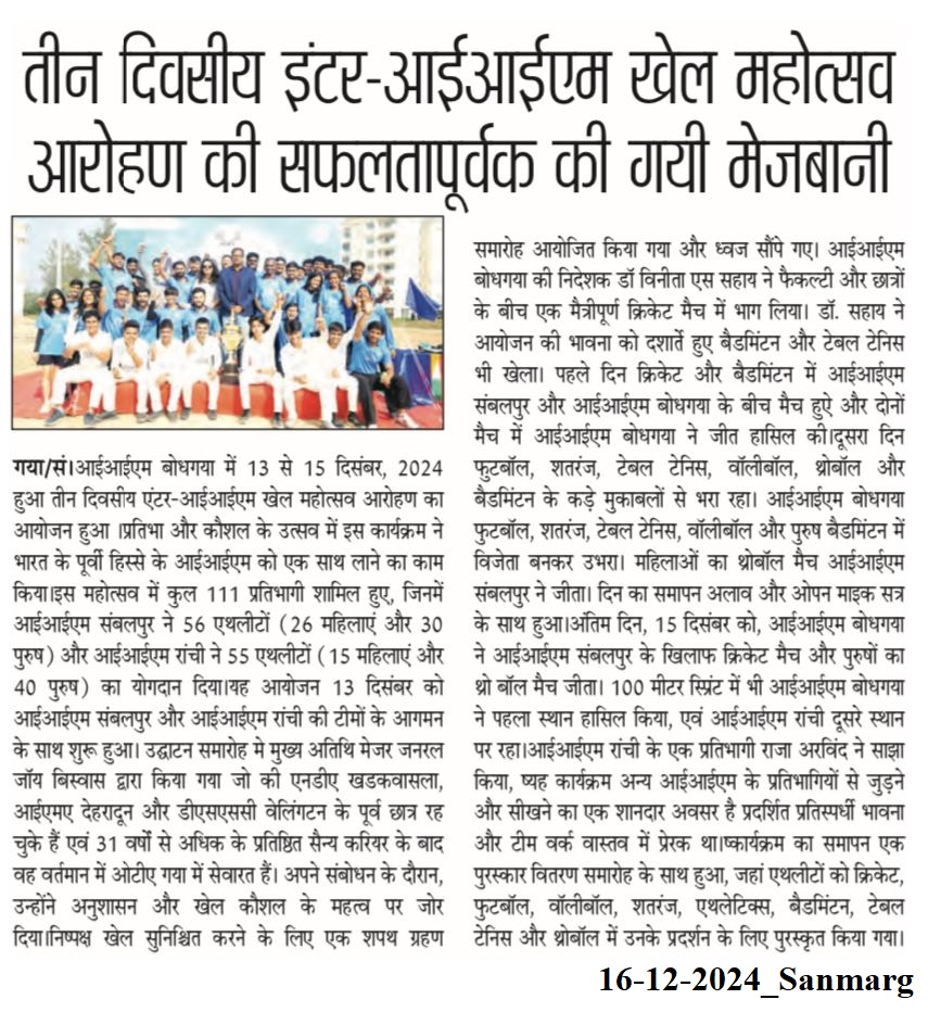 Aarohan 2024, Inter-IIM Sports Festival, IIM Sambalpur, IIM Ranchi, Dr. Vinita S. Sahay- Director of IIM Bodh Gaya, Dr. Amresh Kumar- IIM Bodh Gaya (Chairperson of the Sports Committee)