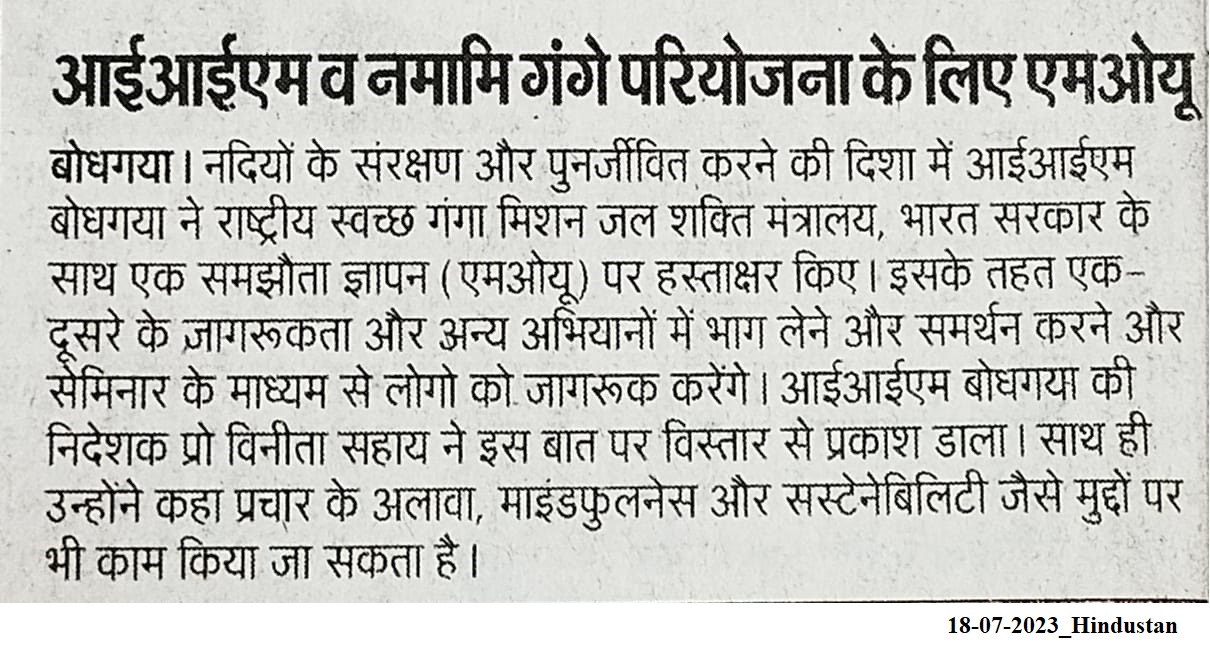 Memorandum of Understanding, MoU, Indian Institute of Management Bodh Gaya, Dr. Vinita S. Sahay- Director of IIM Bodh Gaya, Ministry of Jal Shakti- Govt. of India, Mr. G. Asok Kumar- Director General (NMCG), National Mission for Clean Ganga (NMCG), Namami Gange, IIM Bodh Gaya, IIMBG