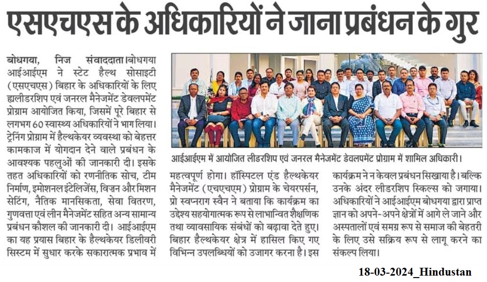 Management Development Program, MDP, State Health Society- Bihar, Leadership Skills, Leadership and General Management, Dr. Swapnarag Swain- IIM Bodh Gaya