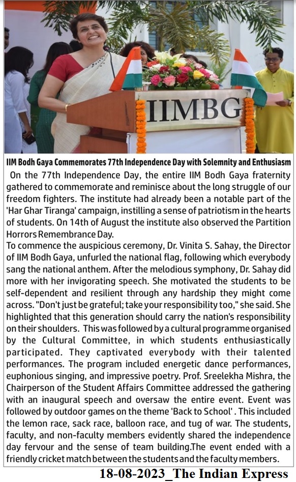 IIM Bodh Gaya commemorates 77th Independence day with solemnity and enthusiasm