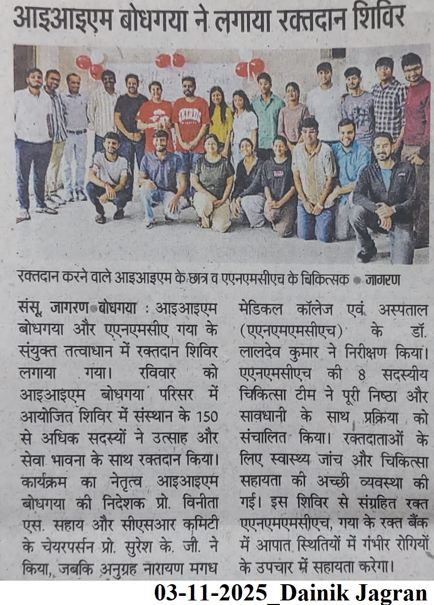 आईआईएम बोधगया ने लगाया रक्तदान शिविर